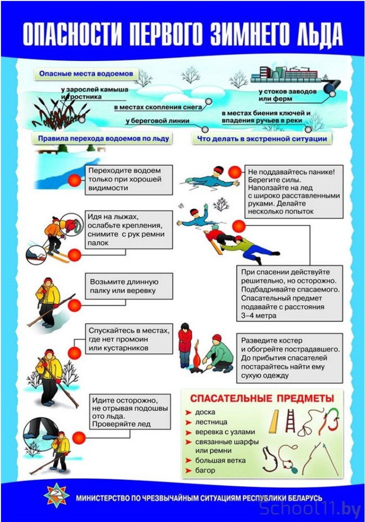 • переходить водоемы нужно в местах, где оборудованы специальные ледовые переправы. В местах, где ледовые переправы отсутствуют, при переходе следует обязательно проверять прочность льда палкой;