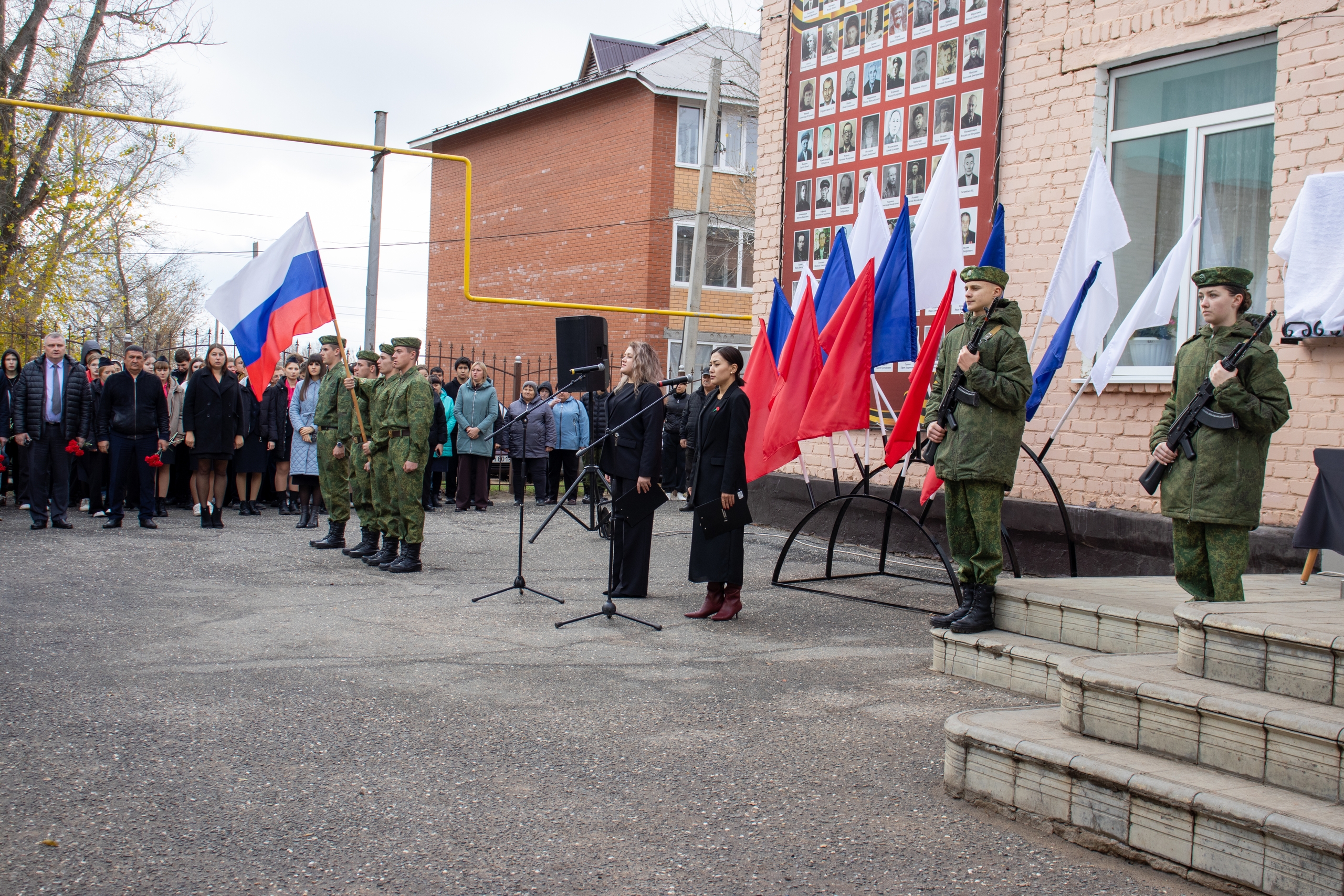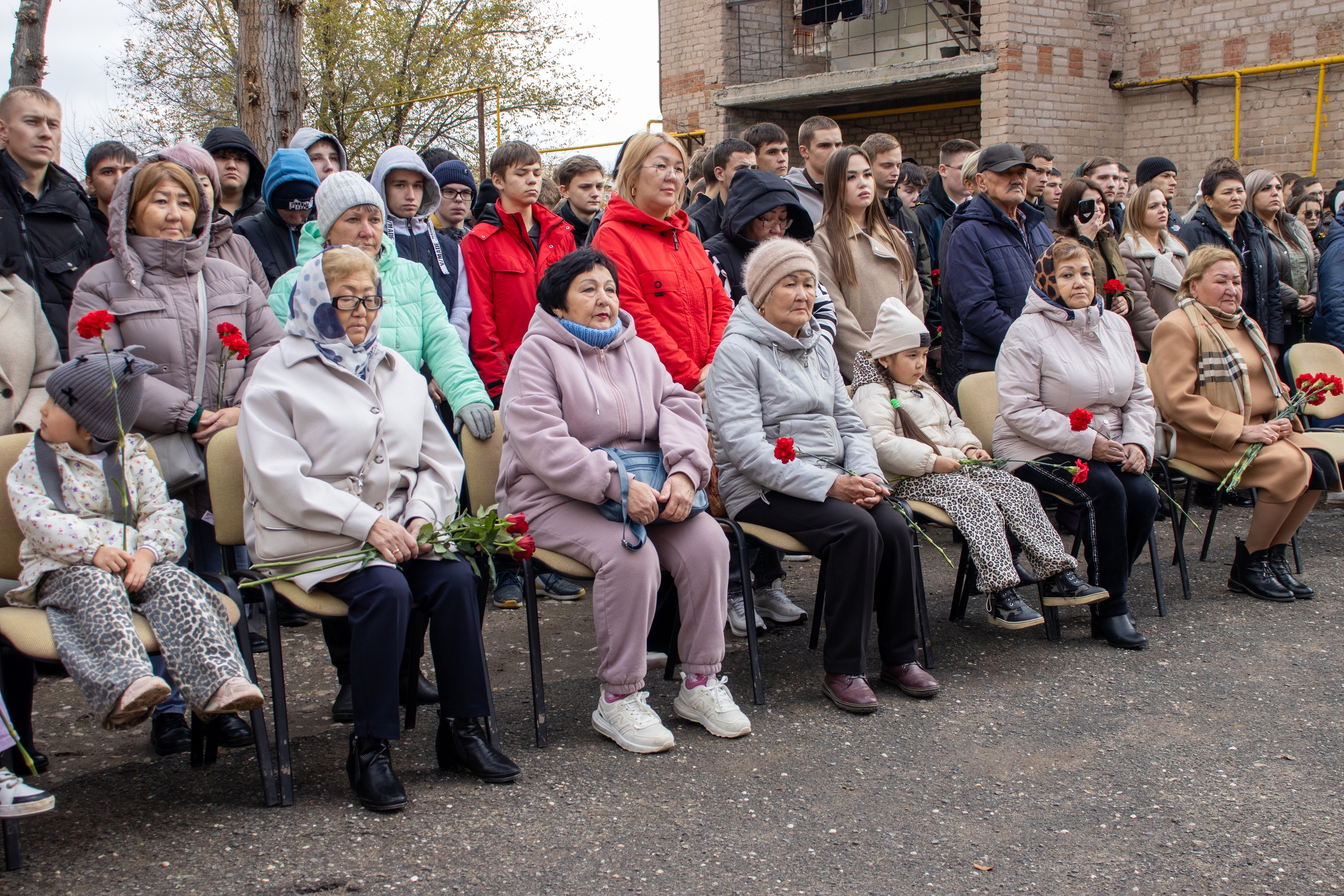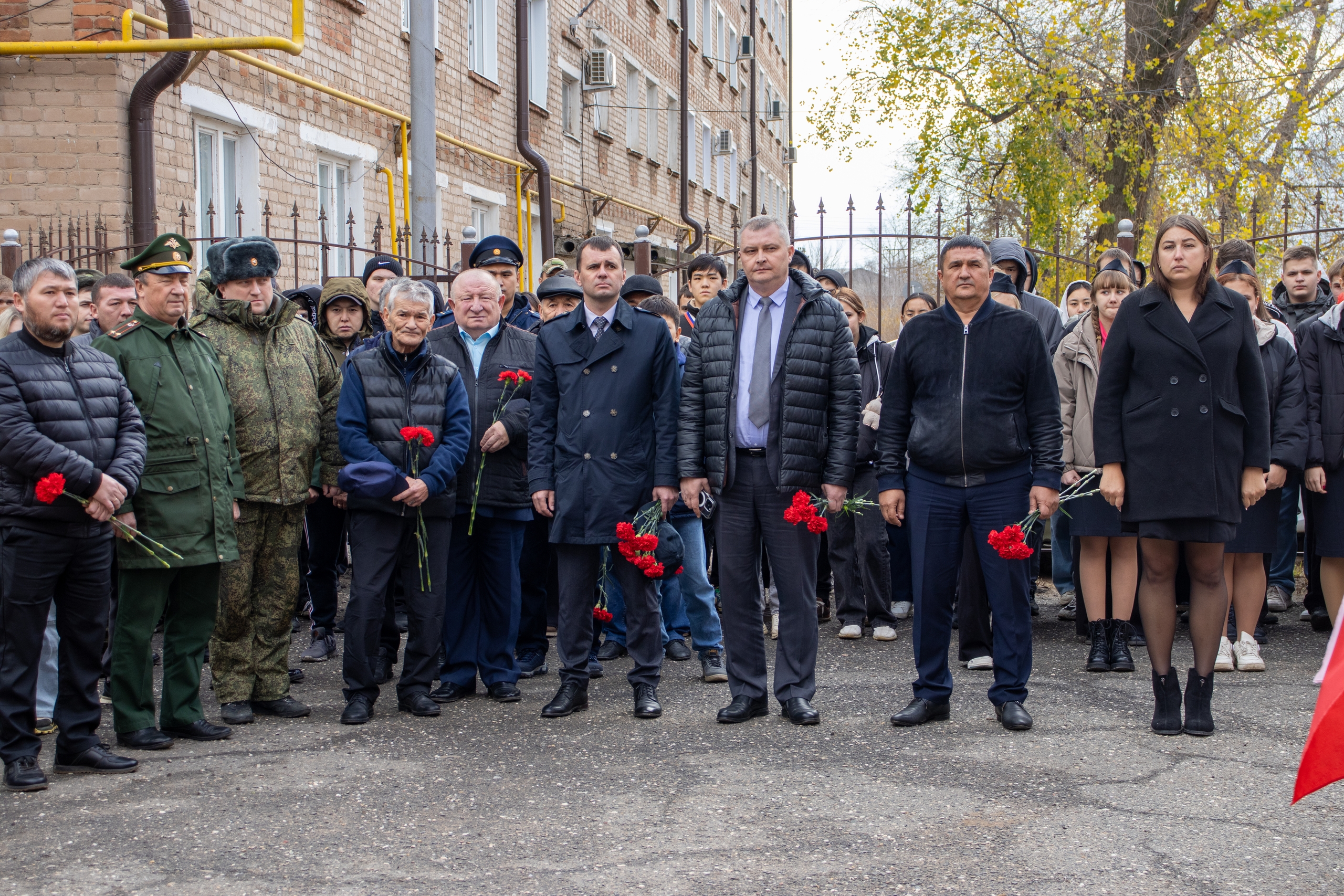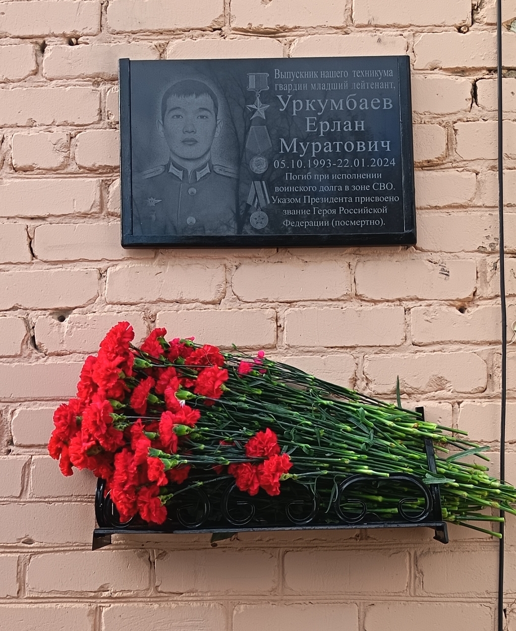 Сегодня в Соль-Илецком индустриально-технологическом техникуме состоялось торжественное открытие мемориальной доски Герою России Ерлану Муратовичу Уркумбаеву.